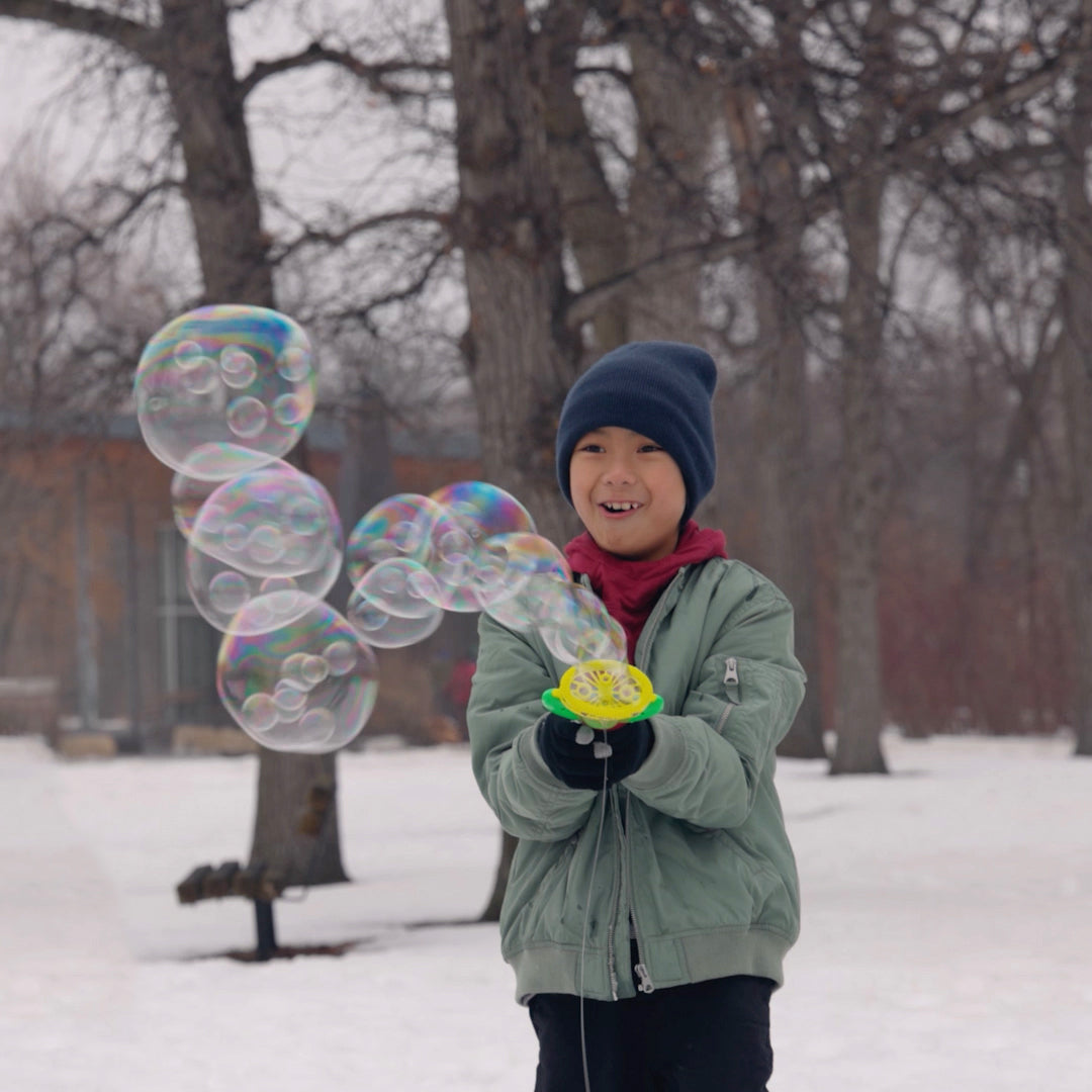 Literal blizzard of bubbles with just one dip! Crazy Ice Bubbles’ unique winter bubble solution is specially designed for outdoor winter fun.
