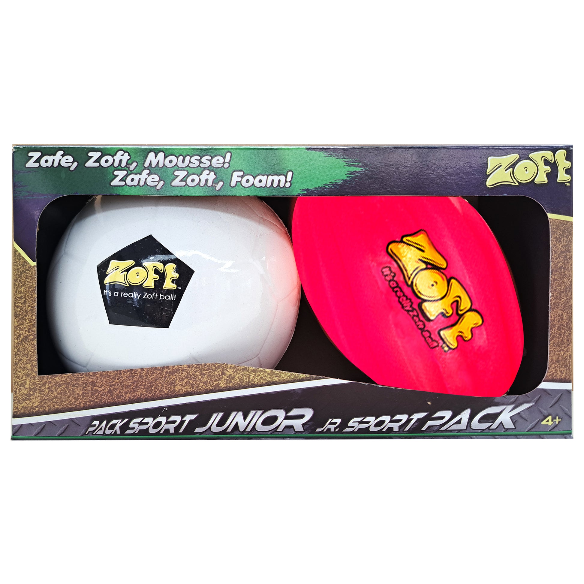Zoft 2 Jr. Ball Sport Pack | Soft Foam Soccer Ball & Spiral Football Set